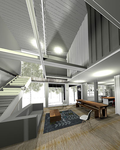 The Vermont Container House is a ground-up new construction of a single family house built primarily out of 4 containers. The house is a 2 bedroom, 2 bath home that uses sustainable strategies and maximizes the benefits of the prefab’d containers. The house organization will allow for a meaningful, dynamic space to be created in the negative space between the containers.